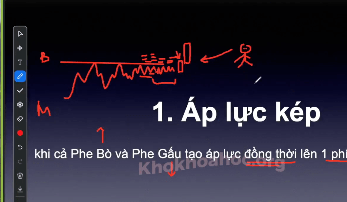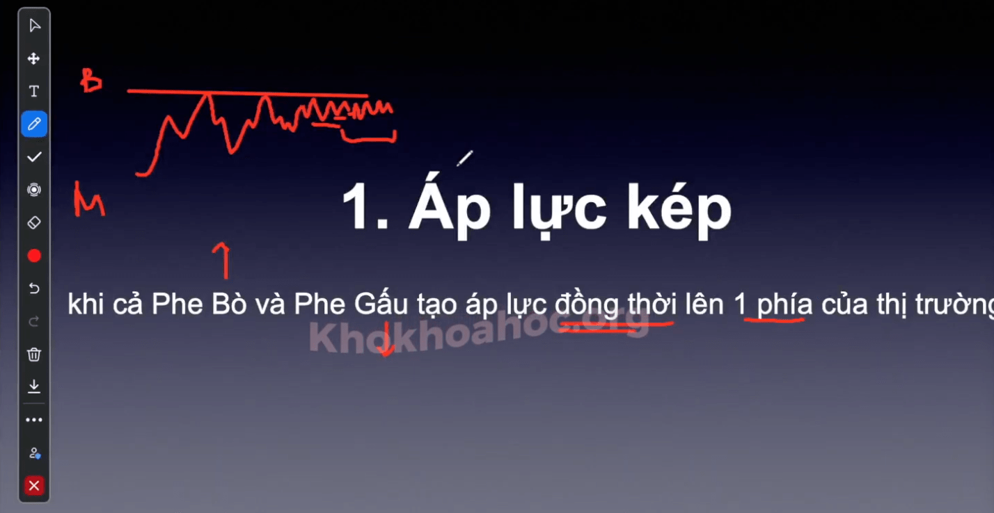 - - Khi cả phe bò (BUY) và gấu (SELL) tạo áp lực đồng thời lên MỘT PHÍA của thị trường