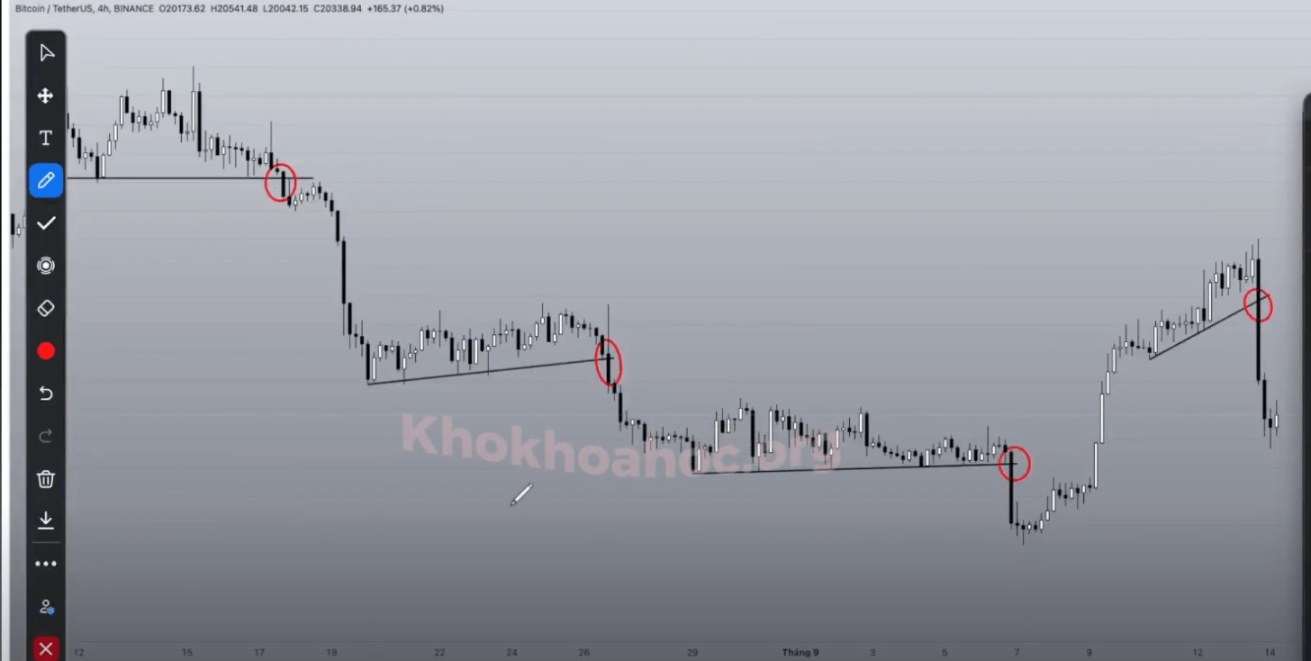 - Trong 100% trường hợp, định hình đường kháng cự sử dụng đường ngang thay vì đường chéo, đường chéo mang tính chủ quan.