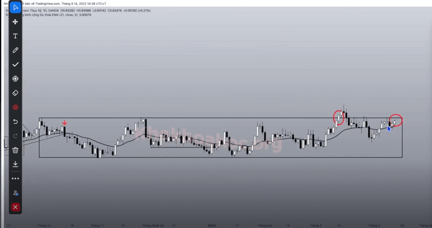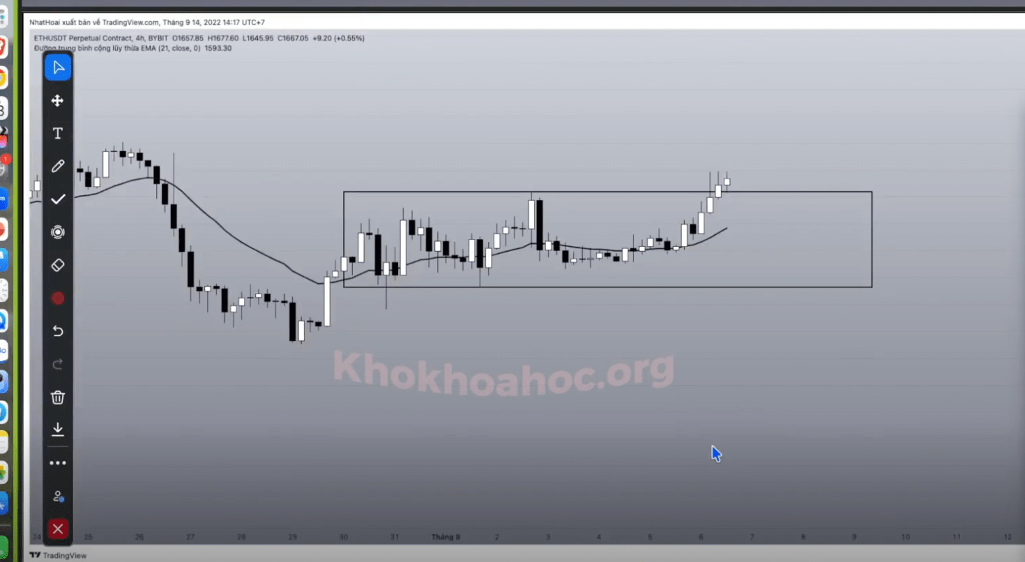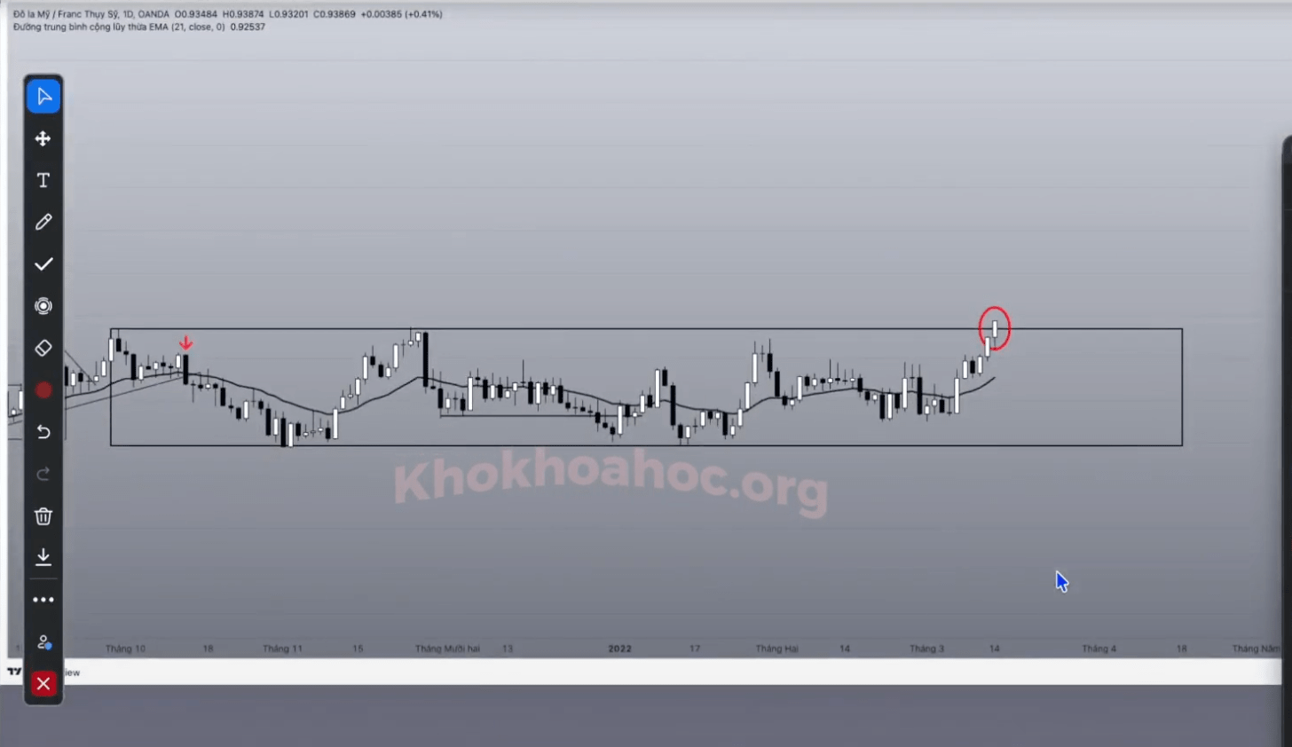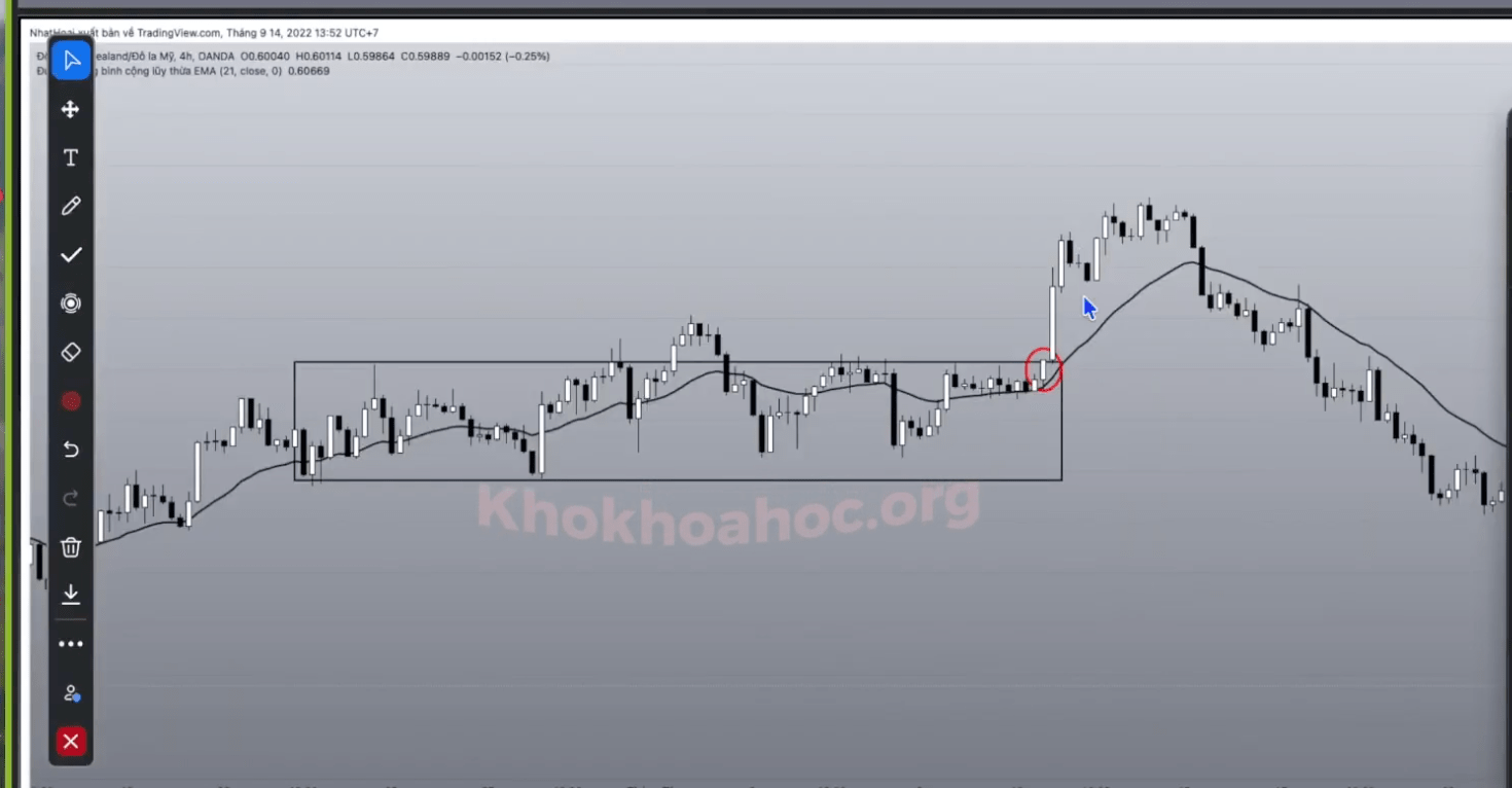 Trước khi phá vỡ, giá có sự tiếp cận đường biên kháng cự và tạo ra nến tích luỹ.