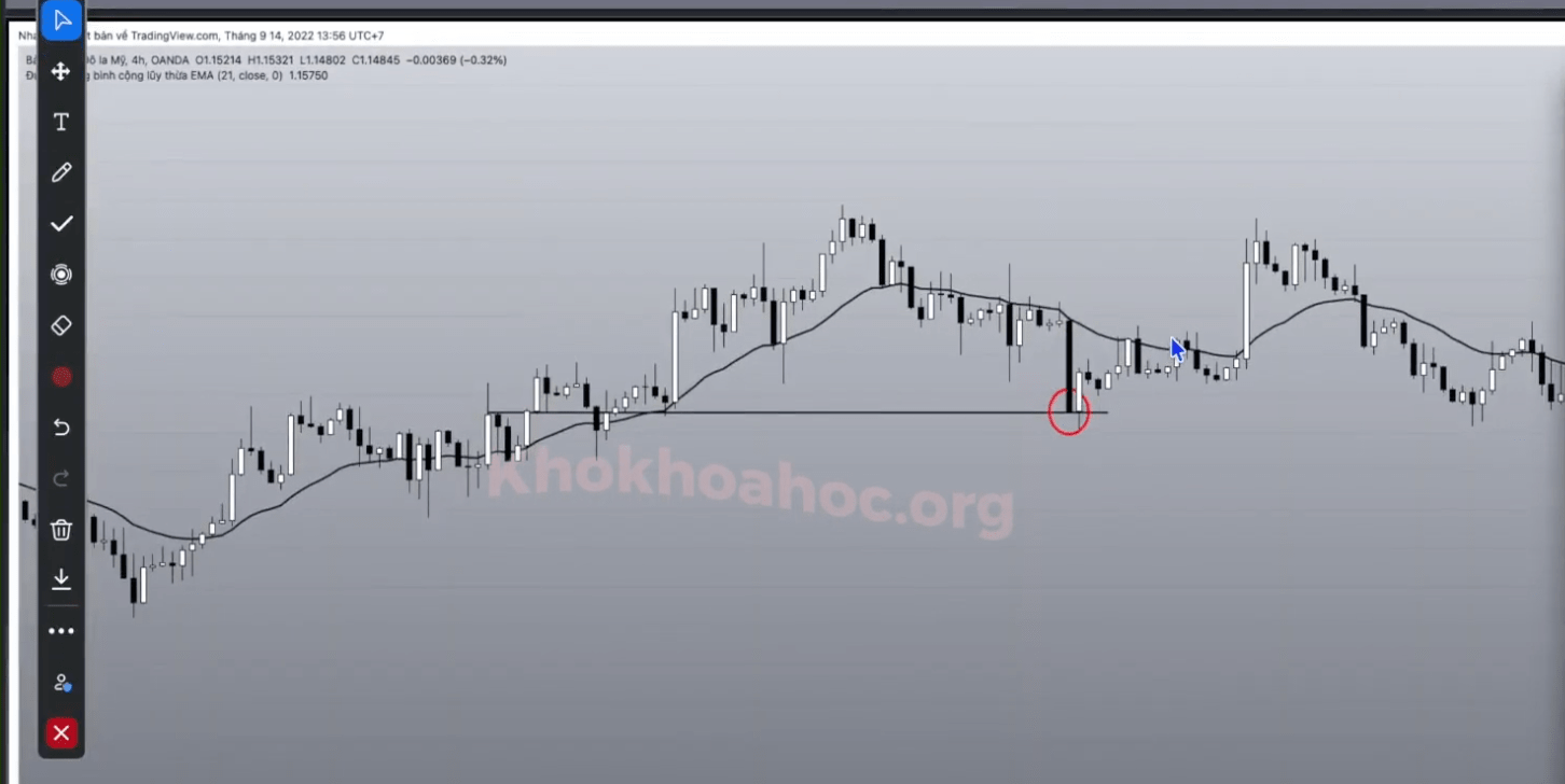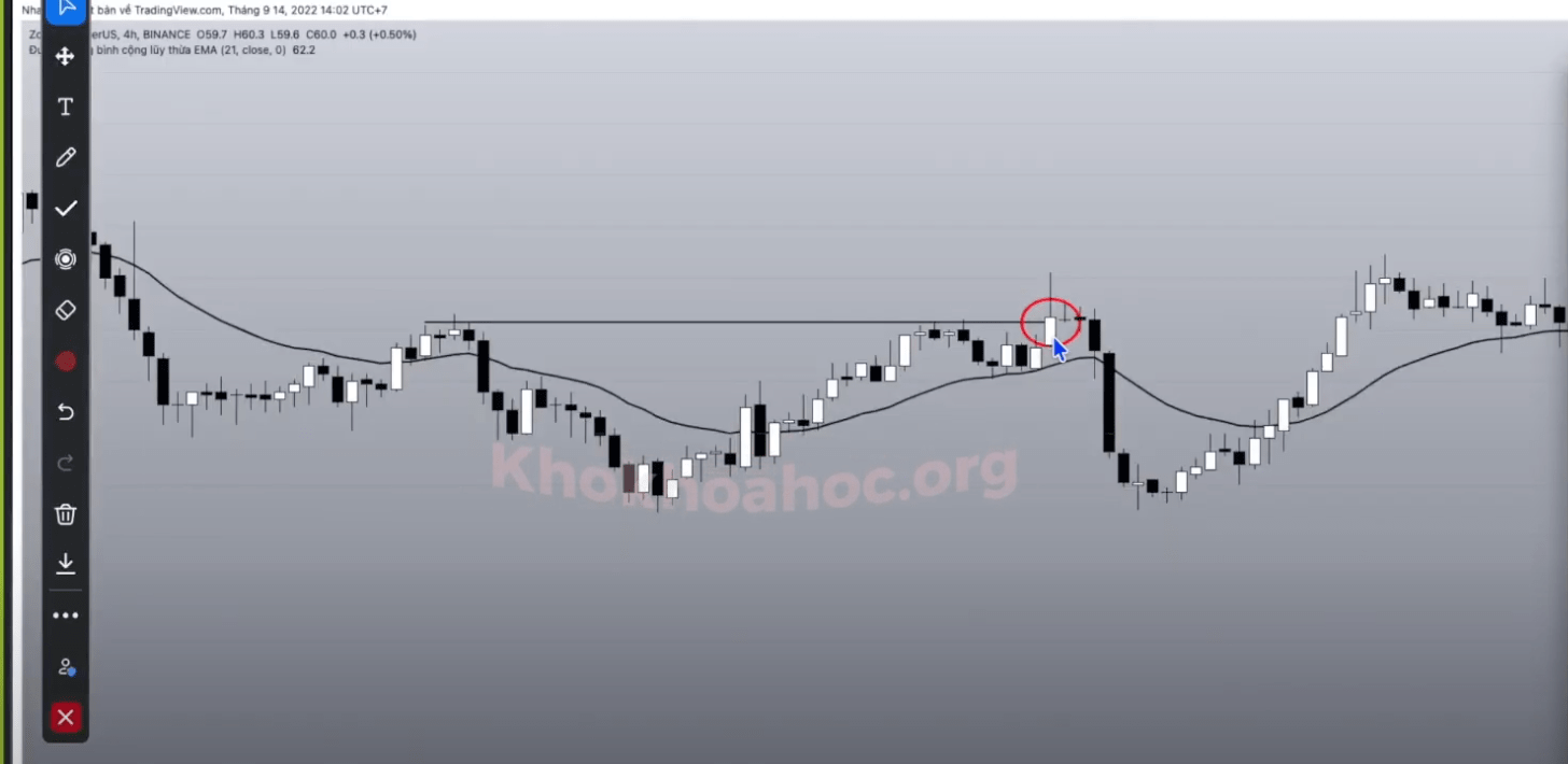 Sau khi chạm trần thì giá bật lại, nhưng chỉ BUY khi có nến tĩnh luỹ nén