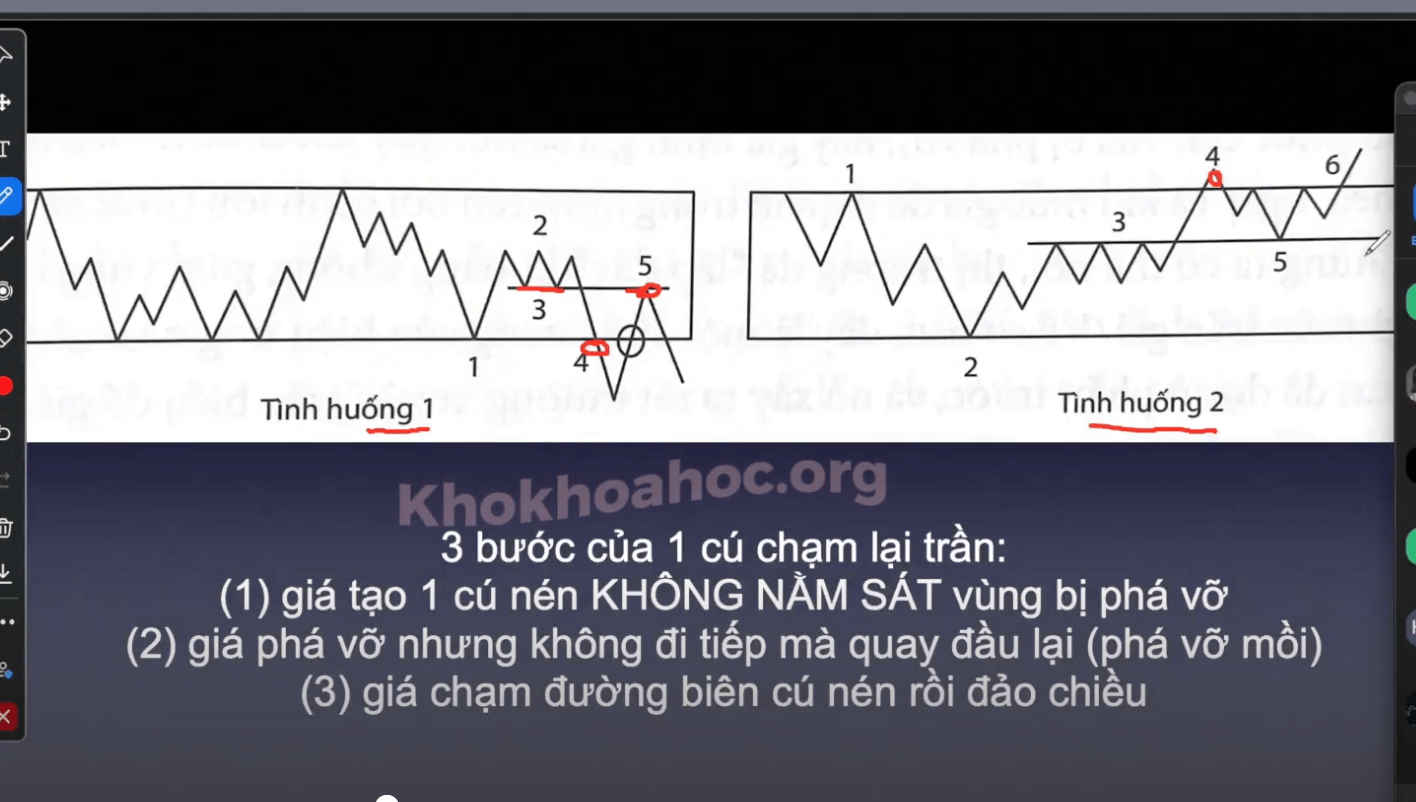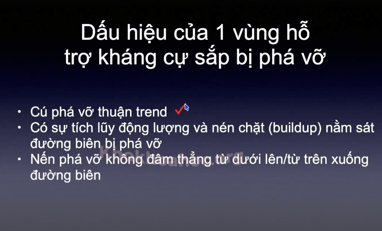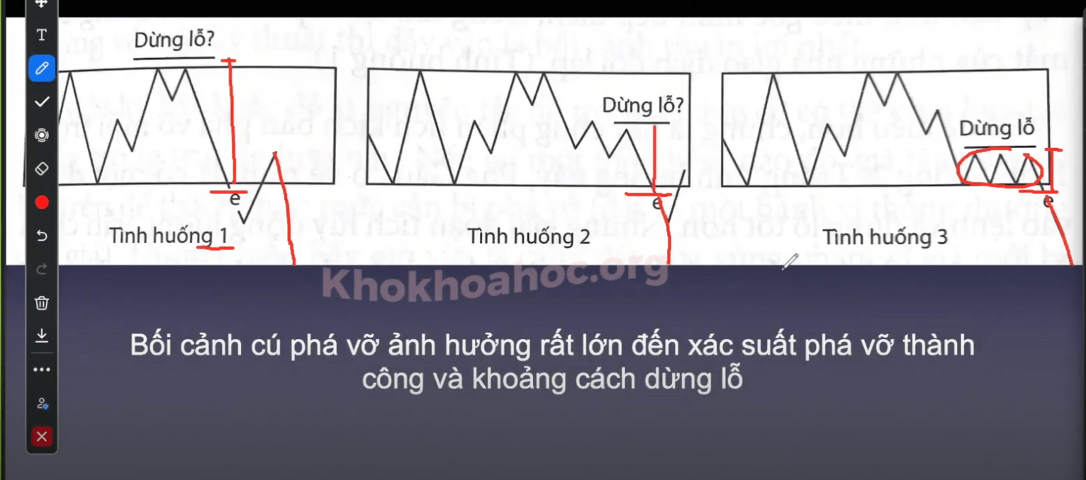 Sau cú phá vỡ mồi/giả. Có 1 đoạn tích luỹ sau đó, phá vỡ sau là phá vỡ mạnh
