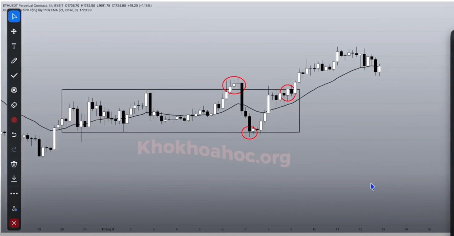 Giải thích 2: Khi có cú hồi sau phá vỡ là do áp lực chốt lời, khiến giá tăng trở lại.