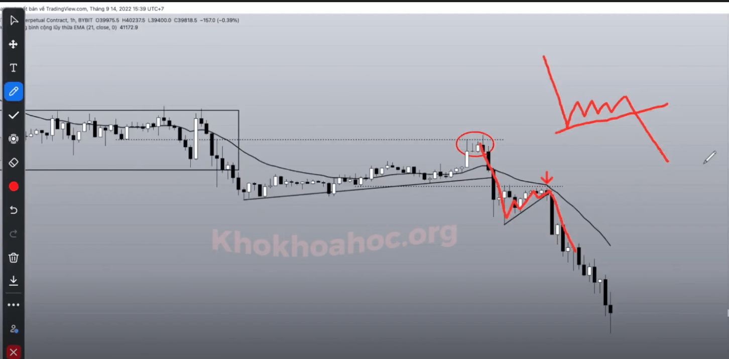 Hiện tượng: Sau khi phá vỡ xong thì retest (chạm lại), sẽ có 1 cú hồi trở về, re test lại vùng hỗ trợ rồi giảm tiếp