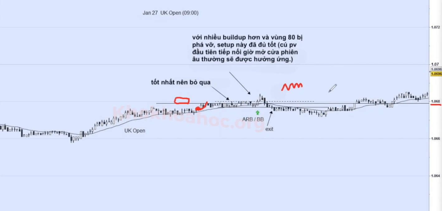 - - Nếu chúng ta là 1 nhà giao dịch phá vỡ, chúng ta sẽ đóng vai phe đứng ngoài (không phải phe mua bán) - đây là 1 thời điểm thuận lợi nhất. Không dại tham gia vào trận chiến mua bán, khi thấy dấu hiệu thắng thì vào.
